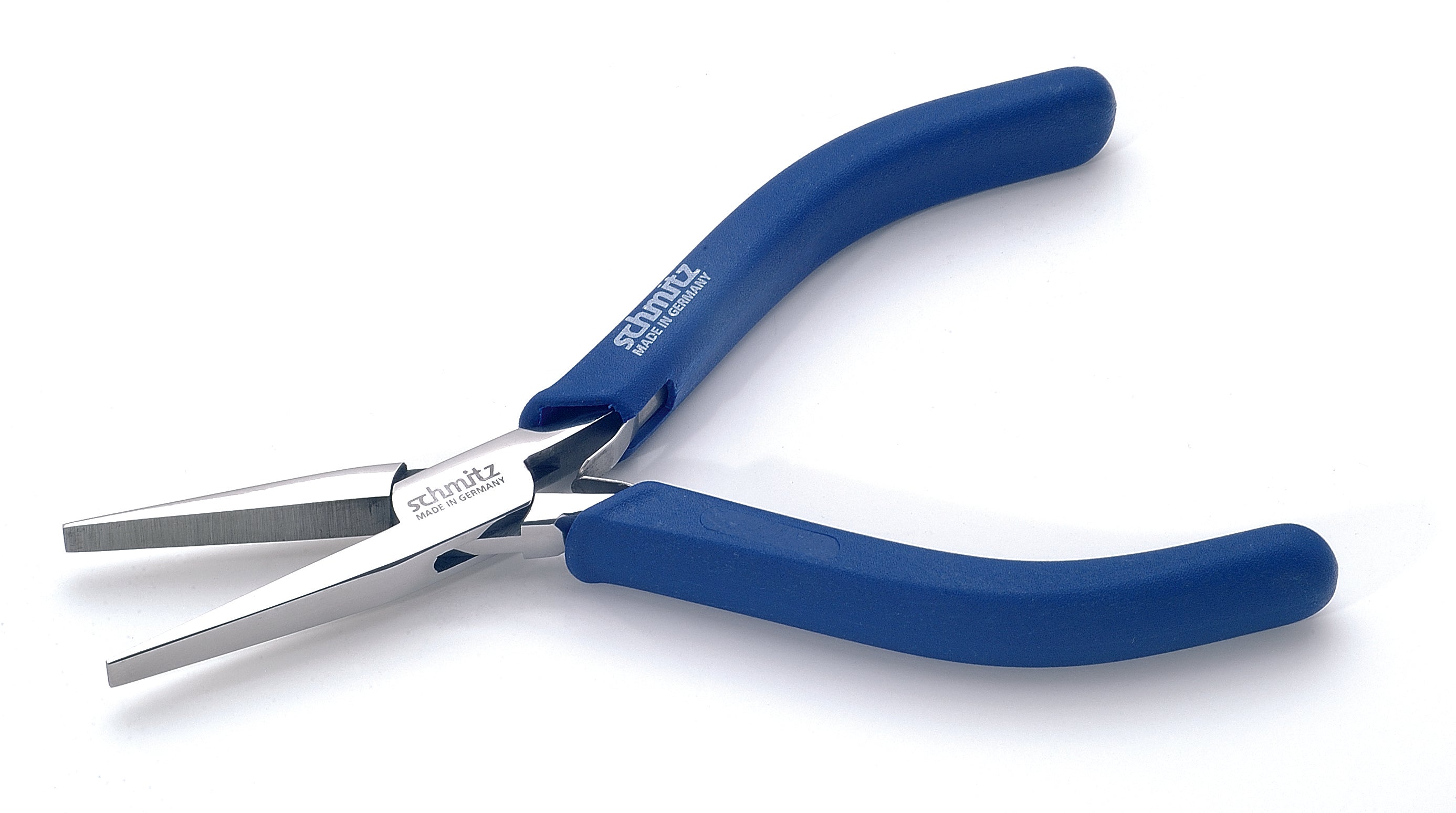 Flachzange 200mm sehr lange, kräftige Greif-Backen ohne Verzahnung mit Doppelblatt Öffnungsfeder. ESD/EGB Sichere Zwei-Komponenten-Griffe mit Doppelblatt-Öffnungsfeder.